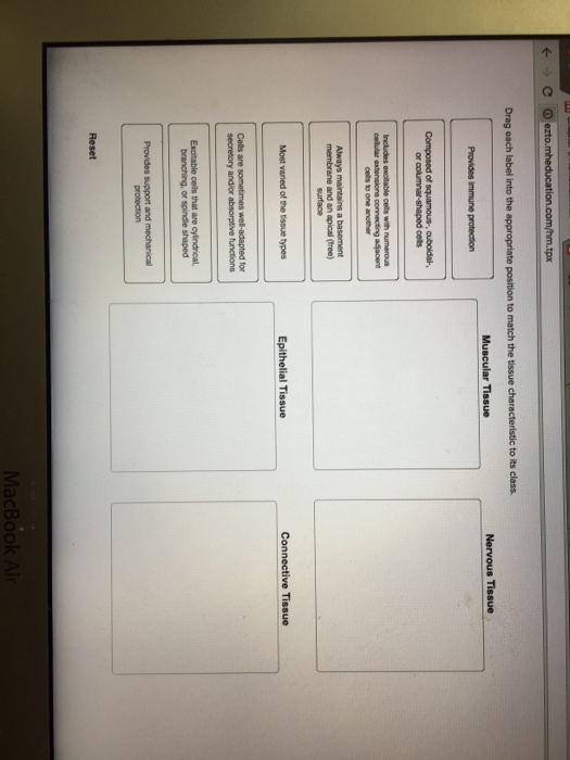 42 drag each label into the appropriate position to match the tissue characteristic to its class
