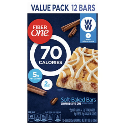Fiber One Brownies, 70 Calories, 5 Net Carbs, Snacks, Cinnamon Coffee ... SOFT-BAKED BARS: Fiber One 70 Calorie Cinnamon Coffee Cake Soft-Baked Bars; Delicious treats you can feel good about eating and enjoy as part of a balanced diet; Contains 2 Weight Watchers (WW) personal points ; HEALTHY FIBER SNACKS: A heatlhy combination low net carbs and low sugar along with at least 20% daily value of fiber so you'll feel ...