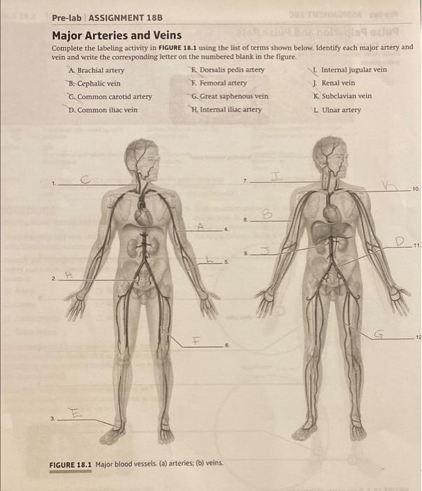 Solved Pre-lab ASSIGNMENT 18B Major Arteries and Veins ...